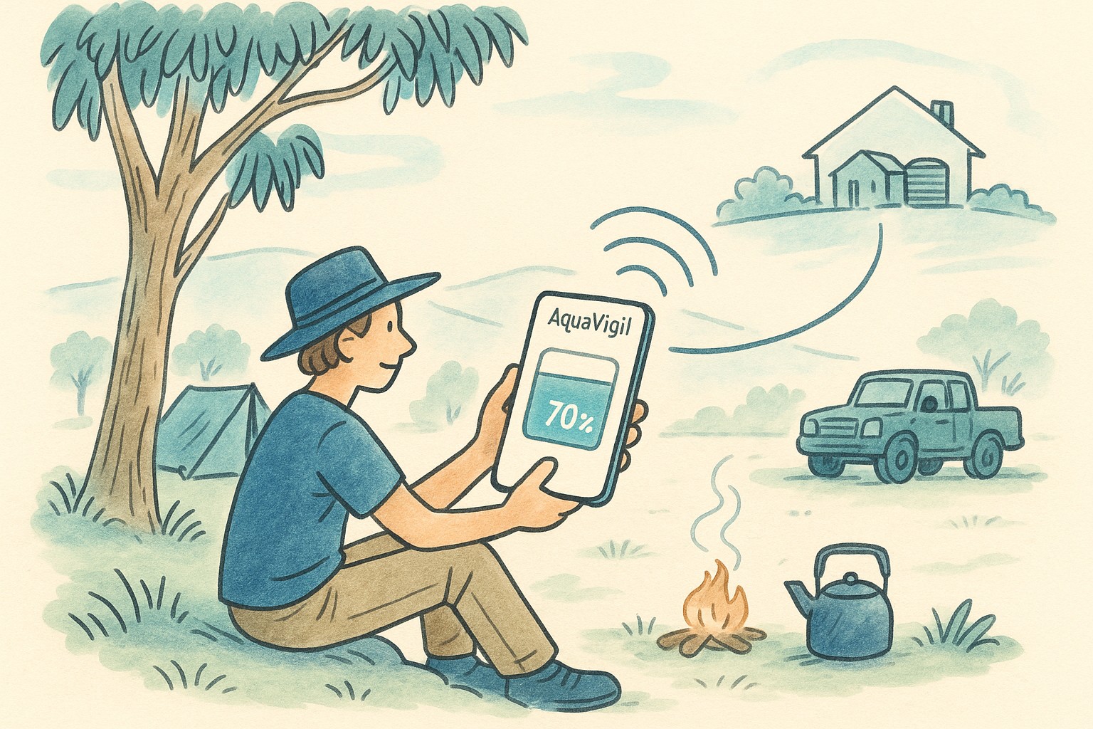Wouldn’t it be nice to check your tank levels while you’re away, just like you check the weather or the footy scores? The AquaVigil dashboard already runs beautifully on your home network — simple, direct, and fast. But to peek at it from the road or the office, there’s a little bit of network magic involved.